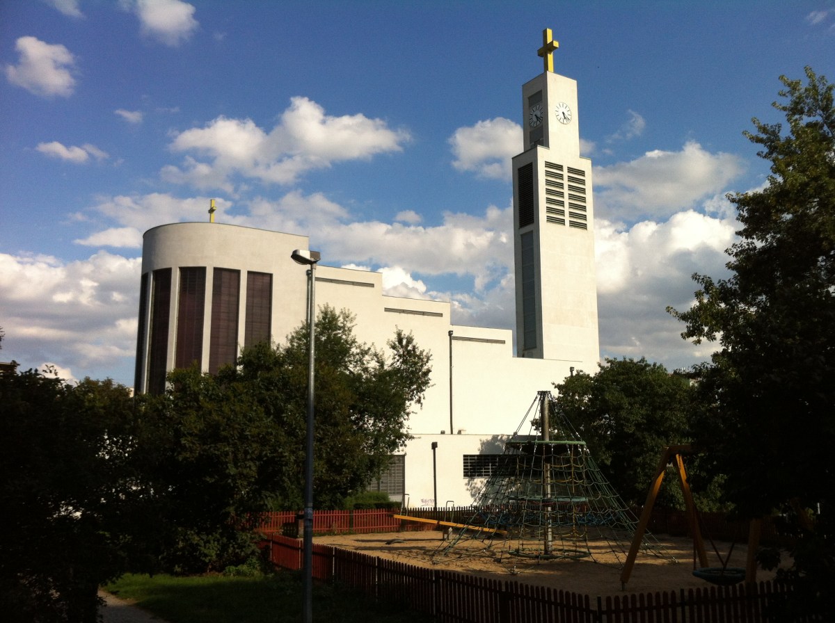 IMG_1426 Published September 2, 2013 at 2592 × 1936 in Architecture? From 900 A.D. Till Today Next → St. Wenceslas, major example of Functionalism (1930) by former Cubistic architect Josef Gočár, who also built Prague’s Cubistic flagship “House of the Black Madonna” in Celetná street. Photo: GK