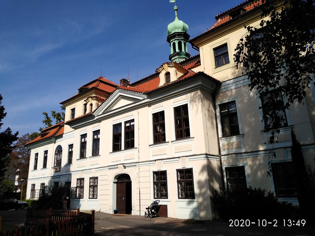 One of them is Chateau Veleslavín, a pretty little baroque manor house from the early 18th century, located in a once fabulous garden which is still a wonderful oasis of peace off Prague’s busy streets. I was able to visit it yesterday, Oct. 2nd, 2020, as part of a great private initiative called “Architecture Days”. They offer free visits of mostly inaccessible places, every year at the beginning of October.