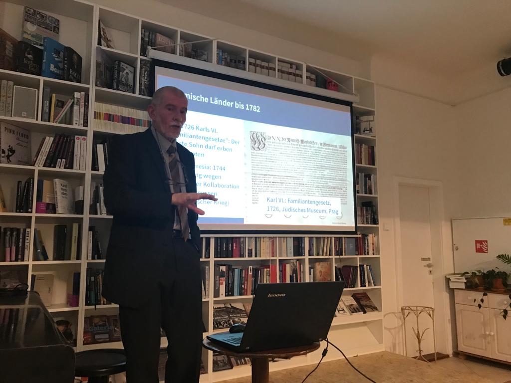 Es war der erste Vortrag einer Serie mit dem Titel “Geschichte im Kontext”, die sich der Geschichte und Kunstgeschichte Prags, der Böhmischen Länder und schlussendlich Mitteleuropas widmet. Im kulinarisch-literarischen Ambiente des neuen Prager Literaturcafés Božská lahvice lauschte ein kleines, aber feines Publikum fast eineinhalb Stunden den Ausführungen Krumpaks zu Aufklärung und deren Querverbinungen zur Haskala, ihrem jüdischen Pendant, wobei sich Krumpak jedoch, was die Haskala betrifft, auf die Argumentation des Göttinger Judaisten Gerhard Lauer berief, der die Haskala als Reaktion auf die ab dem 16. Jahrhundert entstehenden Erschütterungen der jüdischen Orthodoxie interpretiert.
