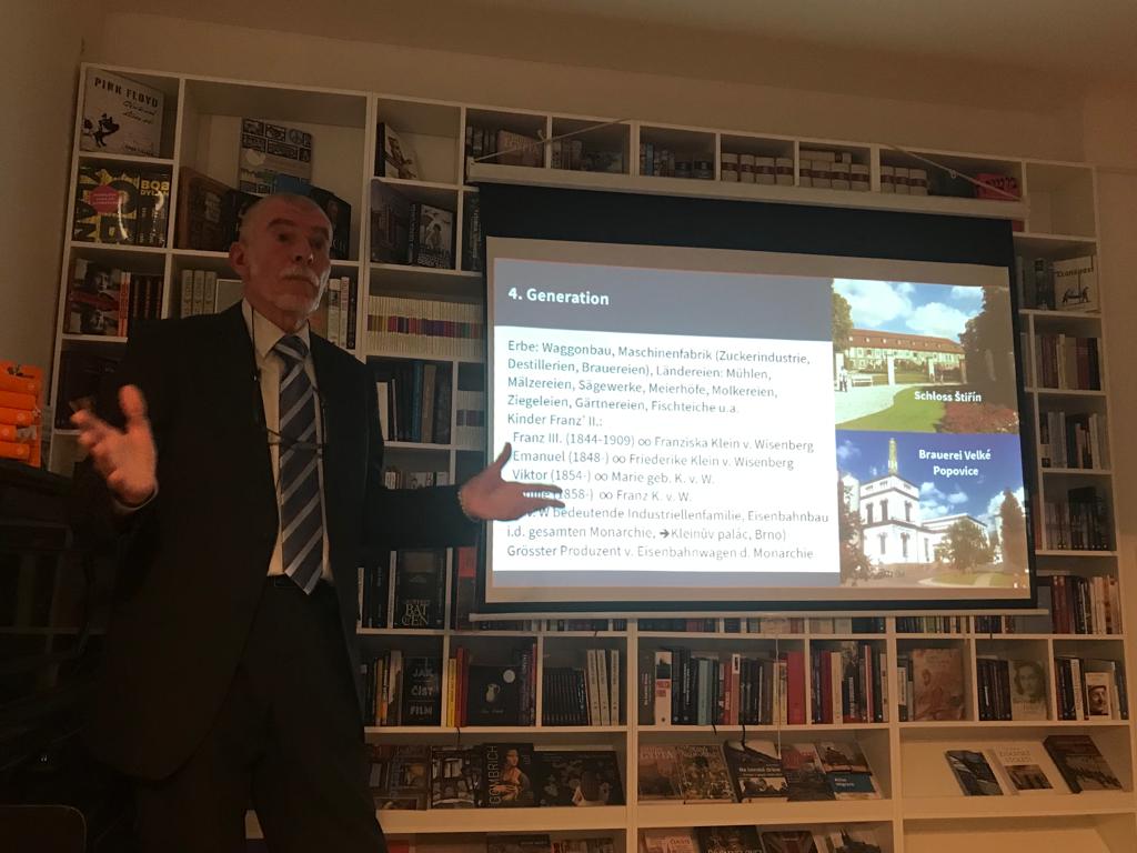 Die Vortragsreihe im Literaturcafé Božská lahvice in Prag heisst “Geschichte im Kontext”, daher stellte Krumpak immer wieder Querverbindungen zu den Ereignissen der Zeit her, sei es die eheliche Verbindung zur Familie des Goldschmieds des Prager Jesuleins, die Rolle mehrerer Ringhoffers im Prager Stadtrat und die Nationalitätenfrage im 19. Jahrhundert, oder die abenteuerlichen Erschleichung der Tatra-Patente durch Hitler und den dadurch mitverursachten späteren Welterfolg des Volkswagen-Käfers. Die genialen Tatra-Ingenieure stammten allesamt aus Österreich – Hans Ledwinka, der Vater des Haflinger- und Pinzgauer Konstrukteurs Erich, Béla Barényi und Edmund Rumpler.